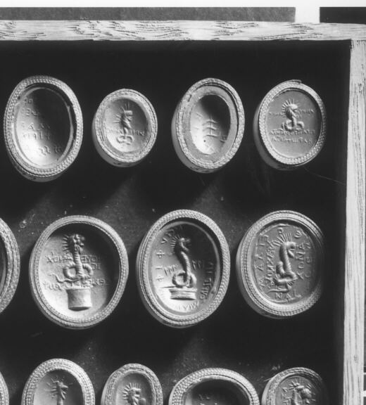 200000566, Tassie, 566, LION HEADED CHNOUBIS (RAYS), BUST OF A MAN AND INSCRIPTIONS IN THE FIELD., Stosch, (Philipp, Baron), Tassie, J.; Raspe, R.E.: A Descriptive Catalogue of a General Collection of Ancient and Modern Engraved Gems,... (1791), 52,NO.566,TRAY 9.1, 9.3, Emerald