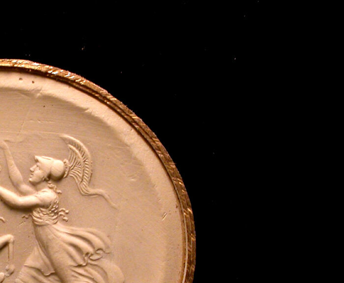 40000663, Poniatowski, T635, MINERVA PUTTING THE BRIDLE ON PEGASUS [THE BIT INTO HIS MOUTH], SOLWNOS, Solon, Market, Prendeville, J.: Explanatory catalogue of the proof-impressions of the antique gems possessed by the late Prince Poniatowski and now in the possession of John Tyrrell, Esq. (1841), Christie's, London, Catalogue des pierres gravées antiques de S.A. le Prince Stanislas Poniatowski ([1830?]-1833), Boston, Skinner Auction: 2746B; September 09, 2014; Lot: 197 Sold for: $2,829, Amethyst