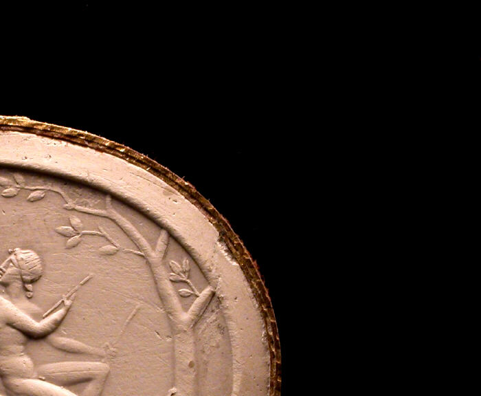 40000543, Poniatowski, T515, MARSYAS TEACHING OLYMPUS TO PLAY THE FLUTE, DIOSKOURIDOU, Dioskourides, Numismatic Museum, Athens, Karapanos, (Konstantinos), Journal international [sic] d'archéologie numismatique, Gasparri, C.: 'Gemme antiche in eta neoclassica' in Prospettiva 8 (1977), Christie's, London, Monson, (Lord), Prendeville, J.: Explanatory catalogue of the proof-impressions of the antique gems possessed by the late Prince Poniatowski and now in the possession of John Tyrrell, Esq. (1841), Christie's, London, Catalogue des pierres gravées antiques de S.A. le Prince Stanislas Poniatowski ([1830?]-1833), 5 (1913), 158, no.216, pl.3, Chalcedony
