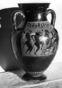 Decoration: A: DIONYSOS SEATED ON STOOL WITH DRINKING HORN AND IVY, SATYRS, SOME DANCING, ONE WITH FILLET B: WARRIORS DEPARTING BETWEEN DRAPED MEN WITH SPEARS, SHIELD DEVICES, EAGLE, ROSETTE