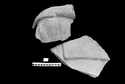 Remarks: Preserves left shoulder, probably female, with hair forming a raised square panel similar to that of the Athena statue 16161. On shoulder, left hand & forearm of another person, larger in scale (L hand - wrist 13.3); fingertips missing. 2nd joining fragment (MPH 15.7, MPW 22.7) has more hair with brown paint along bottom edge. Statues hollow inside, built up with lumps of clay