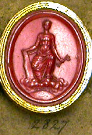 - Description: A PERSONIFICATION (TYCHE?, NAVAL VICTORY?) SITTING IN CLOUDS ABOVE A GLOBE, HOLDING A RUDDER AND FLAGS (?)