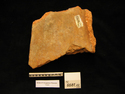 Remarks: Flat painted wall plaque with a rampant lion facing left. Finished right edge. Scar at left break for raised edge, not equal to left edge but converging towards top. Th plaque 4.