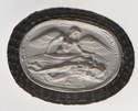 - Description: A winged woman covering a dead (?) man on a kline with a cloth, hatched border.