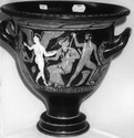 - Decoration: A: WOMAN SEATED WITH SPRIG AND NECKLACE, SATYRS, EROS WITH PHIALE (?), DRINKING HORN, MIRROR, TYMPANON,BOX