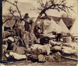 Comments on Photo: 29 x 24.5 cm. LITHOGRAPH OF THIS PHOTOGRAPH APPEARS IN NEWTON, C.T., DISCOVERIES AT HALICARNASSUS, CNIDUS AND BRANCHIDAE, PLATE XV. DESCRIPTION READS "TAKEN IN THE COURTYARD OF THE KONAK OF SALIK BEY, THE HEAD-QUARTERS OF THE EXPEDITION; THE LIONS AND OTHER MARBLES FROM THE MAUSOLEUM, COLLECTED FOR SHIPMENT, ARE LYING ON THE GROUND."