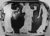 Decoration: A: CULT, LENAIA, MAENADS, ONE WITH LADLE AND SKYPHOS, ONE PLAYING PIPES, AT IDOL OF DIONYSOS, STAMNOI ON TABLE B: MAENADS, WITH THYRSOS, SKYPHOS AND KROTALA