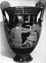 Decoration: A,B: GIGANTOMACHY, ZEUS, WITH THUNDERBOLT AND EAGLE, ATHENA, DIONYSOS WITH VINE AND PANTHER (?), APOLLO AND ARTEMIS (?), GIANTS, DEVICE, SNAKE Neck A: TRIPTOLEMOS SEATED IN WINGED CHARIOT WITH PHIALE, DEMETER WITH OINOCHOE AND TORCHES, PERSEPHONE (?) WITH TORCHES, WOMAN WITH TORCH, DRAPED MEN WITH STAFFS Neck B: MUSIC CONTEST, DRAPED MAN ON PLATFORM WITH KITHARA, DRAPED YOUTH, DRAPED MEN WITH STAFFS, NIKAI (WINGED WOMEN)