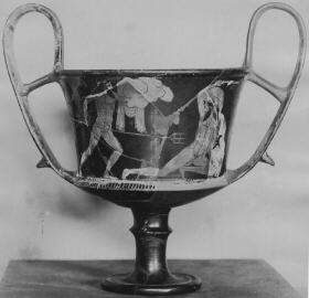 Publication Record: Beazley, J.D., Attic Red-Figure Vase-Painters, 2nd edition (Oxford, 1963): 482.34, 832.36 Beazley, J.D., Attische Vasenmaler des rotfigurigen Stils (Tübingen, 1925): 319.4 Beazley, J.D., Paralipomena (Oxford, 1971): 422 Hoppin, A., A handbook of Attic red-figured vases signed by or attributed to the various masters of the sixth and fifth centuries B.C. (Cambridge, 1919): II, 51 Muth, S., Gewalt im Bild, Das Phänomen der medialen Gewalt im Athen des 6. und 5. Jahrhunderts v. Chr. (Berlin, 2008): 313, FIG.213 (B) Padgett, J.M. (ed.), The Berlin Painter and His World, Athenian Vase-Painting in the Early Fifth Century B.C., Princeton University Art Museum Monograph Series (New Haven and London, 2017): 170, FIG.16 (B) Pevnick, S. (ed.), Poseidon and the Sea. Myth, Cult, and Daily Life (Tampa, 2014): 131, NO.28 (COLOUR OF A) Pollak, L., Zwei Vasen aus der Werkstatt Hierons (Leipzig, 1900): 28, PLS.4-5 (DRAWINGS OF A AND B)