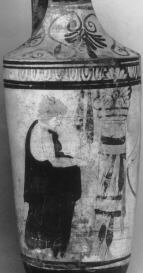 Decoration: Body: FUNERARY, WOMAN WITH CLOTH AT STELE WITH SASHES