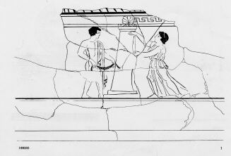 - Decoration: Body: FUNERARY, YOUTH AND WOMAN, WITH FILLETS, AT STELE