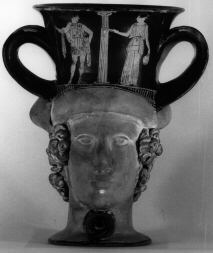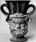 Decoration: A: WARRIOR DEPARTING, WOMAN WITH PHIALE AND OINOCHOE, COLUMN B: WOMAN WITH OINOCHOE, YOUTH WITH PHIALE AND SPEAR, DEPARTING, COLUMN Figure: HEAD OF SATYR