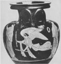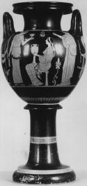 Decoration: A: DOMESTIC, WOMAN (BRIDE) SEATED, WITH LEBES, WOMEN WITH CUP (?) AND ALABASTRON, BAG (?) SUSPENDED, PLANT B: WOMEN, ONE WITH SCEPTRE, ONE RUNNING WITH TORCHES, CLOTH AND WREATH SUSPENDED Under handle: NIKE (WINGED WOMAN) WITH TORCHES