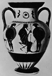 Decoration: A: WARRIORS FIGHTING OVER FALLEN WARRIOR BETWEEN WOMEN B: WARRIORS DEPARTING, OLD MAN SEATED WITH STAFF Neck A: FLORAL, LOTUS PALMETTE CHAIN Neck B: INSCRIPTION