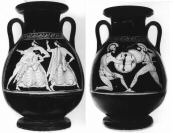 CAVI Subject: A: Peleus and Thetis; at right, a fleeing Nereid. B: two nude hoplites