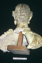 Remarks: Female head and upper torso. Hollow, handmade. Mantle with painted lotus-palmette border. Large disk earrings, bead necklace. Meniskos hole 1.2. Holes for separately attached diadem H 5, W 16.8, D 4.1. Th wall 3.5-4.