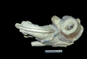 Remarks: Hollow, handmade group with bridled horse (MPH 25.4, H head 16.7, W mane 2.6, W head 6.4, L jaw 7.5) facing to right, with legs forward & head lowered, carrying rider (MPH 18.8, L knee-ankle 12.8) on back, sitting side-saddle facing viewer, wearing short tunic painted red with white or gray hem bordered by 2 parallel black lines. On back, black reins with red-brown beads, volute with red-brown edges; small hole above volute (Diam 0.6). Hollow horse torso (Th wall 2) & rider torso (Th wall 1.8). Vent hole (Diam 0.6) between rider's body & underside of right leg. Detached from raking sima top corner. Despite brown skin and muscular legs, rider is probably an Amazon because of side-saddle position.
