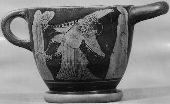 Decoration: A: MAENAD DANCING, BETWEEN ROCKS B: MAENAD PLAYING PIPES, ROCK, THYRSOS