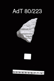 Remarks: Fragment of figural revetment plaque of banquet scene. Preserves fragment of table and couch with well-preserved paint.