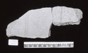 Remarks: Preserves part of upright plaque of crested ridge tile. On one face, 2 parallel incised vertical lines, 6.6 cm. from 2nd single incised line, filled with red-brown paint. On opposite face, no incisions, but traces of white-on-red paint. Along bottom, where detached from ridge tile, incised line as if plaque were formed from 2 halves. From excavations around the Temple of Castor & Pollux, but probably originally belonging to Regia III