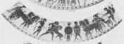 Decoration: Inside of rim: FLORAL, IVY LEAF CHAIN Neck: SHIPS On rim: THESEUS AND THE MINOTAUR, CHARIOT, HERAKLES AND NESSOS, CHARIOT, FIGHT, WARRIORS WITH BOEOTIAN SHIELDS FIGHTING OVER FALLEN, CHARIOT, FIGHT, WARRIORS, HERAKLES AND THE LION BETWEEN IOLAOS WITH BOW AND ATHENA, CHARIOT
