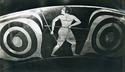 Decoration: A: ATHLETE, ACONTIST BETWEEN EYES BETWEEN PALMETTES B: ATHLETE, HOPLITODROMOS, SHIELD DEVICE, LEG, BETWEEN EYES BETWEEN PALMETTES I: KOMOS, YOUTH WITH DRINKING HORNS