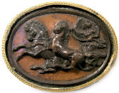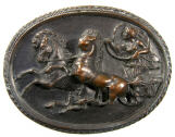 - Description: Eos, dress flying, in a galloping biga. The near front leg of the near horse, its muzzle, and the near chariot wheel are damaged.