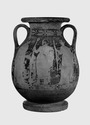 Decoration: A: DIONYSOS (BEARDLESS) WITH THYRSOS AND KANTHAROS, MAENADS, ONE WITH TORCH, SATYR PLAYING PIPES B: DRAPED SATYR WITH THYRSOS, BETWEEN MAENADS, ONE WITH TORCH