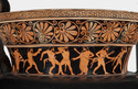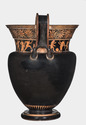 Decoration: Neck A: ATHLETES, TRAINERS (DRAPED MAN AND YOUTH), YOUTHS BOXING, YOUTHS WITH JAVELINS, DRAPED YOUTH WITH PIPES, DISKOBOLOS, POST, BALL Neck B: ATHLETES, SATYRS (ITHYPHALLIC), SOME DRAPED (TRAINERS), ONE WITH DISKOS, ONE WITH HALTERES, ONE BOXING, SOME WITH JAVELINS, COLUMN, BALL