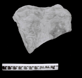 Remarks: Small fragment of antefix plaque or appliqué with relief heads of woman and bearded man set close together. H male head 7.6.